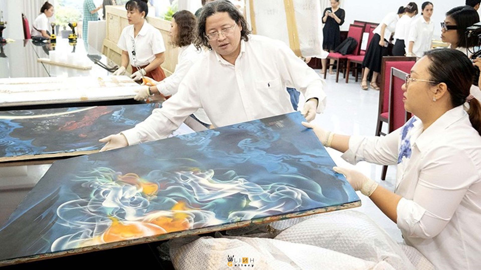 Phó Giáo sư, Tiến sĩ Lâm Nhân, Hiệu trưởng Trường đại học Văn hóa Thành phố Hồ Chí Minh cảm thấy xúc động và vui mừng vì bộ tranh về đến quê hương an toàn.